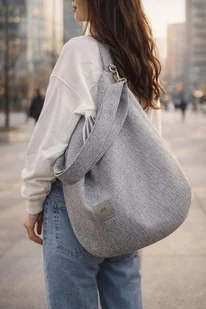 Duża torebka worek z tkaniny o wyczuwalnym, grubym splocie Jest gruba, mięsista i miła w dotyku. Odporna na tarcie a utrzymanie jej w czystości nie sprawia problemów - pokryta powłoką utrudniającą wchłania ...