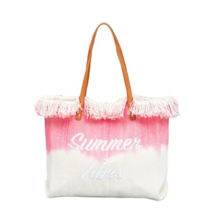 TORBA PLAŻOWA BOHO Z frędzlami różowa ombre TP14R