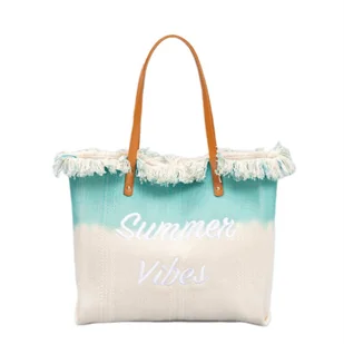 TORBA PLAŻOWA BOHO Z frędzlami zielona ombre TP14ZIE