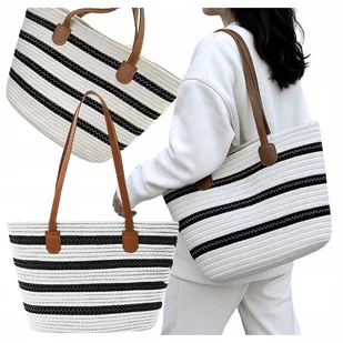 ⚜️TORBA SHOPPERKA NA LATO PLECIONA NA RAMIĘ ⚜️Torebka BOHO-STYLE koszyk na lato, pleciona SHOPERKA, zapinana na SUWAK Wykonana z lekkiego, a zarazem mocnego materiału Materiał: 80% Poliester, 20% Bawełna Podszewka z tkaniny Torebka zasuwana na zamek W środku kieszonka na komórkę, klucze, portfel itp. ⚜️WYMIARY: szerokość torby: 45 cm długość torby: