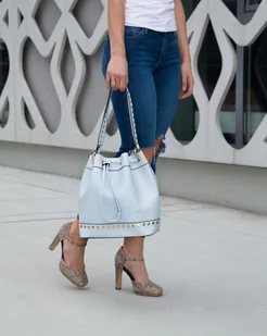 Duża torebka włoska shopper bag skóra naturalna niebieska baby blue