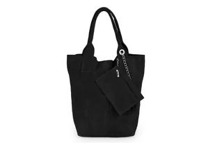 Torba damska wykonana z wysokogatunkowego włoskiego zamszu naturalnego. Do torby dołączona jest praktyczna saszetka. Jest ona uwiązana na łańcuszku co z jednej strony uniemożliwia jej zgubienie, a z drugiej pozwala łatwo odnaleźć ją w torbie. wykonana z dużą dbałością o detale starannie uszyta pojemna komora główna, zamykana na zatrzask mieści format A4 z dużym zapasem saszetka w kolorze torby zamykana na suwak rączki o wysokości 20 cm pozwalają wygodnie nosić torbę w ręku lub ramieniu