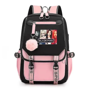 Torba szkolna 2022 Torba na książki z ładowaniem USB i portem słuchawek (blackpink) blackpink Plecak Torba na laptopa czarny/różowy
