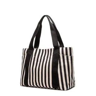 Torba w paski klasyczna czarno-biała nadruk ulica codzienna torba z 7 kieszeniami prezenty dla kobiet, Czarny - Medium
