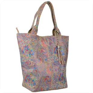 Torba worek skóra naturalna beżowa wzór kwiaty Borse in Pelle Indeks: 3425 W naszej ofercie proponujemy Paniom torebkę skórzaną XL produkcji włoskiej, nowy wzór, bardzo lekką, pojemną, wygodną, mieszczącą format A4 w ciekawym wzorze w kolorowe kwiaty na beżu Wykonana jest ona z bardzo miękkiej naturalnej skóry włoskiej najwyższej jakości o ciekawej strukturze i kolorze. Będzie na pewno ozdobą każdego stroju kobiety. Można ją nosić na ramieniu lub trzymać za ucha. Wewnątrz znajduje się kosmetyczka na łańcuszku z zamkiem, która posiada rozmiary 21cmx14 cm.