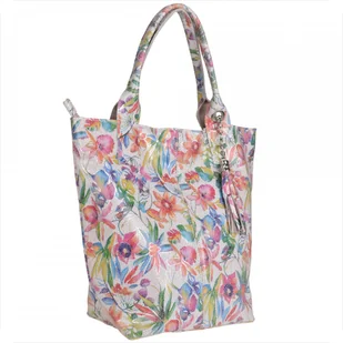 Torba worek skóra naturalna wzór kwiaty Borse in Pelle Indeks: 1325 W naszej ofercie proponujemy Paniom torebkę skórzaną XL produkcji włoskiej, nowy wzór, bardzo lekką, pojemną, wygodną, mieszczącą format A4 w ciekawym wzorze w kolorowe kwiaty delikatnie połyskującą na srebrno. Wykonana jest ona z bardzo miękkiej naturalnej skóry włoskiej najwyższej jakości o ciekawej strukturze i kolorze. Będzie na pewno ozdobą każdego stroju kobiety. Można ją nosić na ramieniu lub trzymać za ucha.
