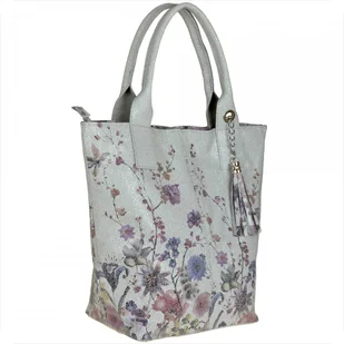 Torba worek skóra naturalna wzór kwiaty z popielem Borse in Pelle Indeks: 782 W naszej ofercie proponujemy Paniom torebkę skórzaną XL produkcji włoskiej, bardzo lekką, pojemną, wygodną, mieszczącą format A4 w ciekawym wzorze w kolorowe kwiaty na popielu. Wykonana jest ona z bardzo miękkiej naturalnej skóry włoskiej najwyższej jakości o ciekawej strukturze i kolorze. Będzie na pewno ozdobą każdego stroju kobiety. Można ją nosić na ramieniu lub trzymać za ucha.