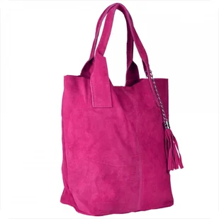 Torba worek zamszowa fuksja z podszewką i zamkiem Indeks: 1076 W naszej ofercie proponujemy Paniom najmodniejszy wzór torebkę skórzaną XL produkcji włoskiej, bardzo lekką, pojemną, wygodną, mieszczącą format A4. Wykonana jest ona z bardzo miękkiej naturalnej skóry zamszowej włoskiej najwyższej jakości w ciekawym kolorze fuksja. Torebka zasuwana jest na zamek, posiada wewnątrz podszewkę oraz kieszonkę na zamek. Będzie na pewno ozdobą każdego stroju kobiety.