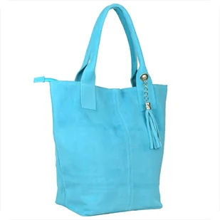 Duża włoska torba na ramię,podwójne uszy, worek Vera Pelle ,Blue WM555BB