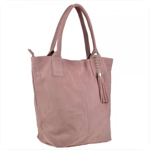 Torba worek zamszowa róż pudrowy z podszewką i zamkiem Indeks: 1505 W naszej ofercie proponujemy Paniom najmodniejszy wzór torebkę skórzaną XL produkcji włoskiej, bardzo lekką, pojemną, wygodną, mieszczącą format A 4. Wykonana jest ona z bardzo miękkiej naturalnej skóry zamszowej włoskiej najwyższej jakości w ciekawym kolorze jasnego różu. Torebka zasuwana jest na zamek, posiada wewnątrz podszewkę oraz kieszonkę na zamek. Będzie na pewno ozdobą każdego stroju kobiety.