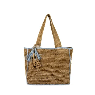 Duża, letnia torba plażowa o luźnym splocie. W środku bawełniana podszewka, z dodatkową kieszonką na drobiazgi. Noś ją w stylu casual z jeansami lub w zestawie ze zwiewnymi, kobiecymi sukienkami. Będzie również świetnym dodatkiem na plażę.