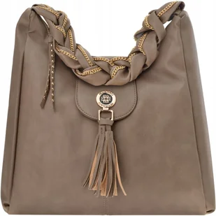 Torba damska typu worek. Torba zawieszona na wygodnej rączce ozdobionej subtelnym łańcuszkiem, przyciąga uwagę niebanalnym wykończeniem. Jednokomorowe wnętrze wykończone jasną, logowaną podszewką, wzbogacone o praktyczne kieszonki na drobiazgi. Torba zapinana na suwak oraz niewielką klapę z napą, przy której doczepione zostały dekoracyjne frędzle. Torbę należy przechowywać w dołączonym woreczku.