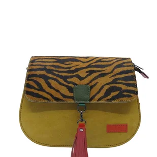Torebka damska klasyczna zamszowa odpinany wymienny chwost brelok OLIVKA