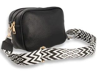 Torebka Damska Listonoszka Na Ramię Czarna z paskiem azteckim