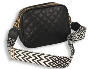Torebka Damska Listonoszka Na Ramię Czarna z paskiem azteckim