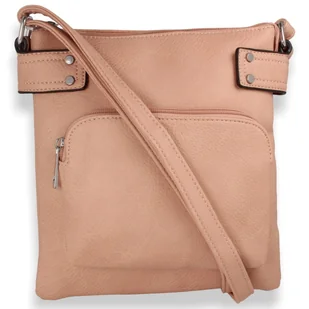 Torebka damska listonoszka PETERSON mała na ramię kieszonki na suwak lekka miejska modna beżowa