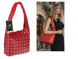 Torebka damska modna pojemna torba na Ramię worek z nitami HJ1357 czerwona
