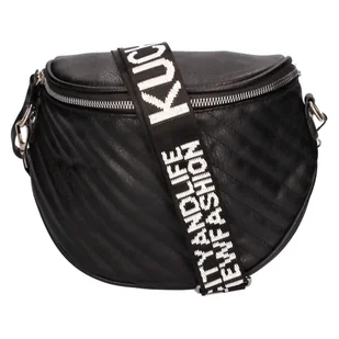 Torebka Damska Nerka pikowana z tekstylnym paskiem czarna. Torebka na zdjęciu to praktyczna nerka w kolorze czarnym, wykonana z miękkiej, teksturowanej imitacji skóry. Posiada dużą komorę zapinaną na zamek błyskawiczny, wewnątrz znajduje się 1 kieszeń, również zamykana na zamek. Po zewnętrznej stronie torebka posiada 1 kieszonkę, zamykaną na zamek. Paskiem torby jest tekstylna taśma w kolorze czarnym.