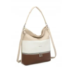 Torebka Damska Shopper Worek A4 LUIGISANTO Beżowa Biała Brązowa