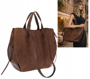 Torebka Damska Shopperka łódka Pojemna Duża Torba zamszowa R961 Czekoladowa
