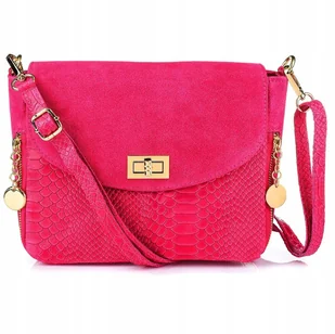 Stylowa, elegancka, damska torebka-listonoszka, wykonana we Włoszech O Produkcie: Marka: Vera Pelle Materiał: Skóra naturalna zamszowa + Skóra naturalna licowa o fakturze imitującej skórę węża Wysokość (cm): 20 Szerokość (cm): 25 Głębokość (cm):