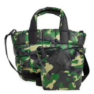 Główne cechy produktu: Wzór Green Camo: połączenie odcieni zieleni, czerni i brązu Fason tote: kompaktowa torebka o miękkiej, plastycznej formie Kwadratowe pikowanie: nowoczesna struktura w stylu puffer bag Nylon techniczny: