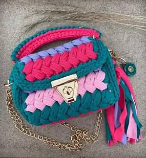 Kolorowa, ręcznie wykonana na szydełku torebka ze sznurka bawełnianego premium. Wyjątkowe połączenie energetycznych barw sprawia, że każda stylizacja nabiera charakteru. Torebka ma eleganckie złote zapięcie ...