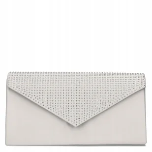 Elegancka wieczorowa kopertówka srebrna torebka damska wizytowa do ręki lub na ramię odpinany łańcuszek ROVICKY