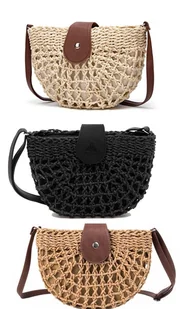 Torebka PLECIONA KOSZYK ETNO PÓŁKSIĘŻYC na ramię 3 KOLORY LATO NA PLAŻĘ