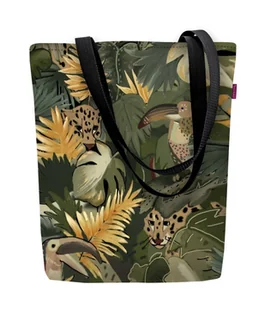 Torebka płócienna Sunny, nadruk Amazonia – shopperka damska, wodoodporna, zamek, mieści A4, udźwig do 10 kg, polska produkcja, ARCO Design Torebka płócienna Sunny to wytrzymała shopperka damska z wodoodpornej Codury, mieszcząca A4 i udźwig do 10 kg. Z efektownym nadrukiem, zamkiem i kieszonką wewnętrzną. Lekka, praktyczna, idealna na zakupy, do pracy i na co dzień. Produkt polski. ✅Rodzaj: torebka shopperka damska ✅Model/Wzór: