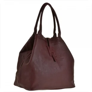 VEZZE Torba skórzana shopper bag bordowa złote okucia na ramię i do ręki