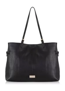 Duża torebka damska w kolorze czarnym. Wykonana ze skóry naturalnej. Model posiada regulowane rączki do noszenia w dłoni lub na ramieniu. Model świetnie się sprawdzi w codziennych stylizacjach. kolor czarny skóra naturalna model jednokomorowy zapięcie na napę wewnątrz dwie kieszenie otwarte oraz jedna na suwak elementy metalowe w kolorze jasnego złota model mieści format A4 Wymiary wysokość – 31,5 cm szerokość – 44 cm głębokość – 10 cm wysokość rączek max – 30 cm