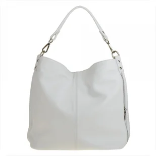 Torebka skórzana damska biała shopper bag Indeks: 750 W naszej ofercie proponujemy Paniom torebkę skórzaną włoską w rozmiarze XL, wykonana ze skóry naturalnej najwyższej jakości, bardzo pojemną, wygodną, mieszczącą format A4 kolorze. Będzie na pewno ozdobą każdego stroju kobiety. Proponowana torebka jest bardzo funkcjonalna i elegancka. Można ją nosić na ramieniu, posiada regulowany dopinany pasek, wykończona jest z jednej strony kieszenią z zamkiem.