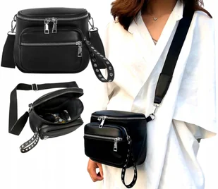 Uniwersalna czarna listonoszka damska na szerokim pasku