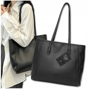 Torebka Skórzana Damska Czarna BAD&BAGS Na Ramię Torba Shopperka Pojemna BAD&BAGS – Torebka damska czarna | Elegancka torba na ramię | Polska Marka Premium M...