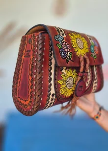 Skórzana torebka, ręcznie wykonana w Meksyku z grubej skóry naturalnej. Jej unikalny design zdobią wzory z motywem kwiatowym, które nadają jej niepowtarzalny styl i charakter. Każdy detal torebki został ...