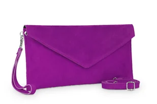 Damska torebka wieczorowa, kopertówka, wykonana z włoskiego zamszu naturalnego. Torebkę można nosić na trzy sposoby: na ramieniu, na nadgarstku oraz w ręku. Pasek na ramię i opaskę na nadgarstek można odpinać w zależności od potrzeby. miękka, zamszowa skóra naturalna staranne wykonanie z dużą dbałością o detale przednia klapa zamykana magnetycznym zatrzaskiem komora główna zamykana na suwak miła w dotyku wewnętrzna podszewka okucia w srebrnym kolorze suwak w kolorze torebki z ozdobnymi suwadłem odpinana opaska na nadgarstek regulowany i odpinany pasek na ramię