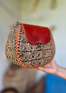 Skórzana torebka, ręcznie wykonana w Meksyku z grubej skóry naturalnej. Jej unikalny design zdobią wzory z motywem kwiatowym, które nadają jej niepowtarzalny styl i charakter. Każdy detal torebki został ...