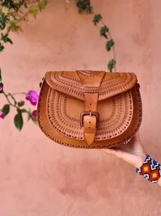 Ta półokrągła torebka ręcznie wykonana ze skóry jest prawdziwym wyrazem elegancji i rzemiosła. Jej kształt i tłoczenia nadają jej unikalny charakter, który przyciąga uwagę wszystkich miłośników mody. Wykonana z wyso ...