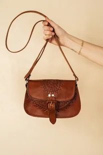 Torebka skórzana ręcznie robiona góralska Sol brązowa zakopane wzory