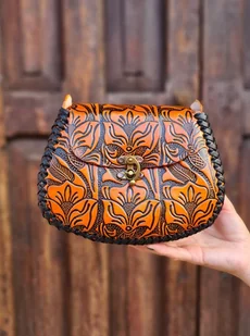 Skórzana torebka, ręcznie wykonana w Meksyku z grubej skóry naturalnej. Jej unikalny design zdobią wzory z motywem kwiatowym, które nadają jej niepowtarzalny styl i charakter. Każdy detal torebki został ...