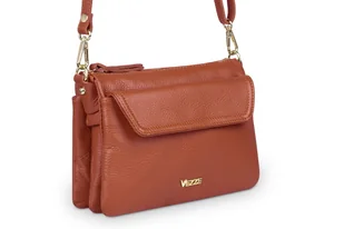 Torebka z wysokogatunkowej, włoskiej skóry licowej. Naturalna faktura skóry. Przedmioty w torebce można wygodnie posegregować dzięki czterem kieszeniom w różnych rozmiarach. Przystosowana do noszenia w ręku, przedramieniu i na ramieniu. wykonana starannie, z dużą dbałością o detale komora główna zamykana na suwak dwie otwarte kieszenie w komorze głównej przednia kieszeń zamykana klapą z zatrzaskiem magnetycznym tylna kieszeń zamykana zatrzaskiem magnetycznym miła w dotyku podszewka w komorze i kieszeniach okucia w złotym kolorze odpinany pasek na ramię z regulacją długości odpinany pasek do noszenia torebki w ręku
