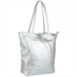 Torebka skórzana z zamkiem shopper srebrna XL Indeks: 1858 Prezentujemy Paniom torebkę BORCE IN PELLE skórzaną shopper w kolorze srebrnym w rozmiarze XL uszy...