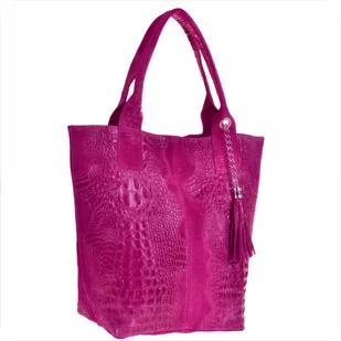 Torebka worek fuksja z miękkiej skóry bardzo lekka XL/krokodylek/ Indeks: 610 W naszej ofercie proponujemy Paniom torebkę skórzaną XL produkcji włoskiej, bardzo lekką, pojemną, wygodną, mieszczącą format A4 w ślicznym kolorze fuksji. Wykonana jest ona z bardzo miękkiej naturalnej skóry włoskiej najwyższej jakości o ciekawej strukturze i kolorze. Będzie na pewno ozdobą każdego stroju kobiety. Można ją nosić na ramieniu lub trzymać za ucha.