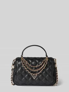 Damska torebka marki Guess;Główna przegroda z klapką i zapięciem na magnes;Pikowanie;Model 'GIULLY II';Aplikacja z metką;Uchwyt;Szerokie przy rozmiarze 1: 21 cm;Długość przy rozmiarze 1: 16 cm;Głębokość przy rozmiarze 1: 6 cm;Długość paska na ramię w rozmiarze 1: 116 cm