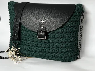 Torebka ręcznie robiona ze sznurka bawełnianego . Klapka z naturalnej skóry. Doskonały dodatek do stylizacji letnich jak i zimowych. Do stroju eleganckiego jak i sportowego. W środku bawełniana podsz ...