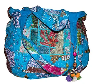 Tribe Azure Fair Trade Torebki damskie na ramię, Turkusowy niebieski, Large