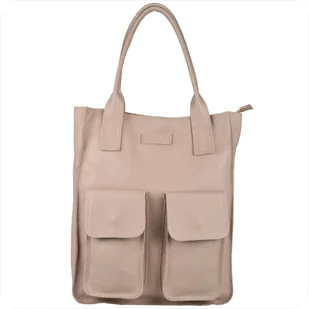 VEZZE Torba skórzana shopper bag róż pudrowy na ramię i do ręki złote okucia