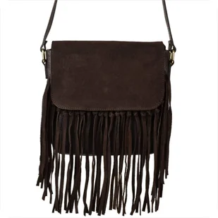Vera Pelle włoska listonoszka z frędzlami skóra naturalna zamszowa i licowa czekolada