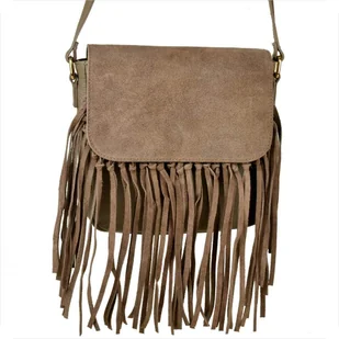 Vera Pelle włoska listonoszka z frędzlami skóra naturalna zamszowa i licowa taupe brąz Indeks: 3316 Proponujemy Paniom super torebkę skórzaną listonoszkę w n...